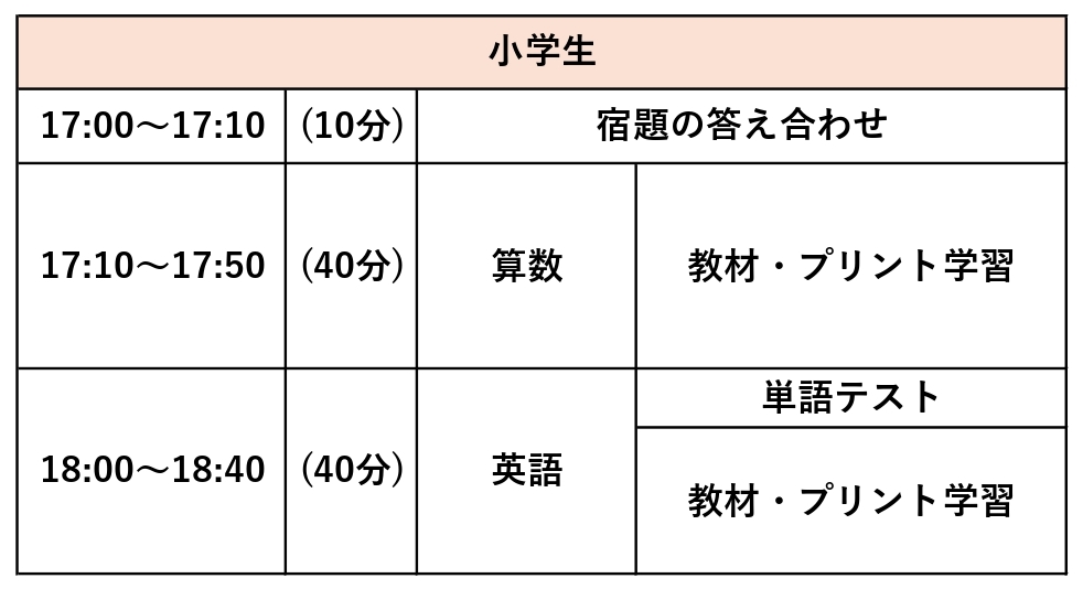 ※小学6年生の2,3月は中学準備期間になります。その期間は料金形態が少し異なります。