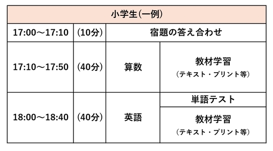 ※中学1年生から授業時間帯が変わります。中学生の授業曜日については、こちら(各年度の授業曜日)をご参照ください。